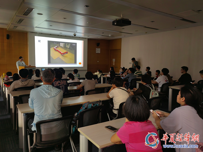 在中國科學(xué)院自動化研究所研究員、博士生導(dǎo)師趙曉光教授講解仿生機(jī)器人的講座上,研學(xué)營的孩子們聽課十分認(rèn)真專注,還時不時提出自己的疑問。