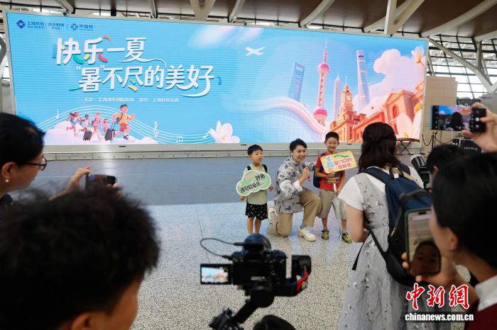 7月28日,演員在航站樓出發(fā)公共區(qū)域表演。當日,上海機場“快樂一夏,‘暑’不盡的美好”暑運周周演活動在浦東國際機場舉行,為旅客提供了更具人文氣質和服務品質的出行體驗。中新社記者 殷立勤 攝