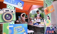 7月29日,海南??冢慰驮跇s山寮村海中嬉戲。中新社記者 駱云飛 攝