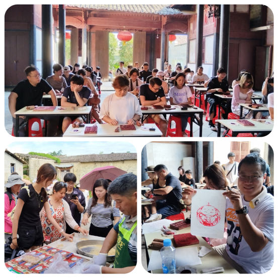 竹橋古村是“金溪書”的發(fā)祥地和主要承印地,村內(nèi)保存著古雕版印刷作坊遺址兩處。青年們?cè)谶@里體驗(yàn)雕版印刷,拿起鬃刷,將墨汁均勻刷在雕版上,再覆上宣紙輕輕按壓,一幅幅“?!弊帧⒏M薜淖髌繁丬S然紙上。“小時(shí)候在課本里見過雕版印刷,今天親手做才知道,每一個(gè)字、每一筆畫都藏著工匠的用心?!迸_(tái)灣學(xué)生魏同學(xué)小心翼翼地將作品吹干,“我要帶回臺(tái)灣,告訴家人這是我用千年技藝印出的祝福。”