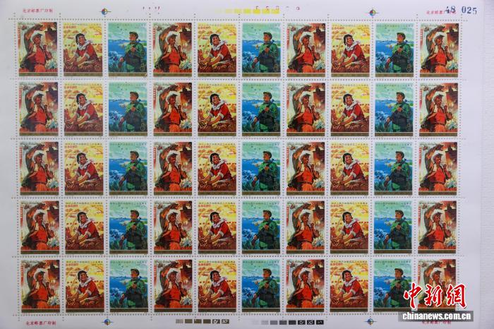 8月13日,游客在青海省文化館參觀“方寸銘記鐵血榮光·郵映大美青海華章”主題集郵展覽。圖為展出的《中華人民共和國成立二十五周年》郵票。中新社記者 薛蒂 攝