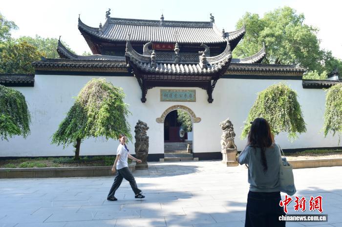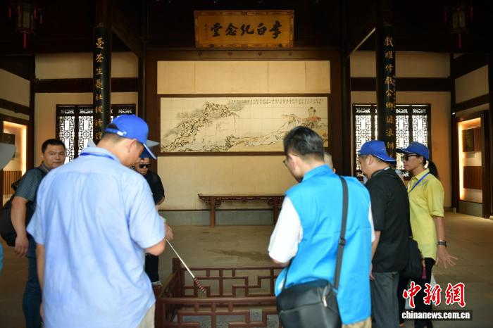 8月18日,2025“青春同行”兩岸新媒體創(chuàng)享季安徽交流營活動在馬鞍山啟幕。近二十位兩岸自媒體人走進馬鞍山、宣城,開啟為期五天的尋跡詩仙李白之旅。圖為自媒體人在馬鞍山市長江采石磯文化生態(tài)旅游區(qū)參訪李白紀念堂。中新社記者 儲瑋瑋 攝