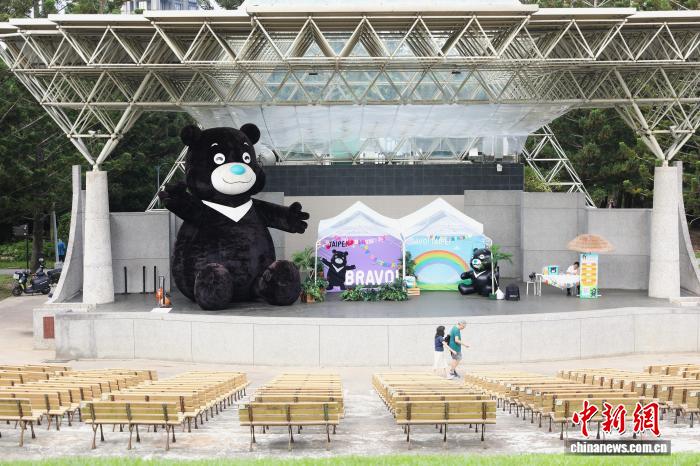 8月19日,臺(tái)北市吉祥物“熊贊”迎來(lái)十歲生日,該吉祥物以臺(tái)灣黑熊為形象。近日,臺(tái)北市政府觀光傳播局在大安森林公園露天音樂(lè)臺(tái)設(shè)置打卡點(diǎn)位,民眾可與6米高的“熊贊”玩偶及“熊贊小屋”合照留念。中新社記者 朱賀 攝