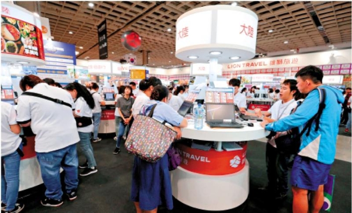 圖:臺(tái)當(dāng)局“禁團(tuán)令”擋不住臺(tái)民眾赴大陸旅游的熱潮。圖為臺(tái)灣民眾在臺(tái)北旅展了解大陸旅游線路。\資料圖片