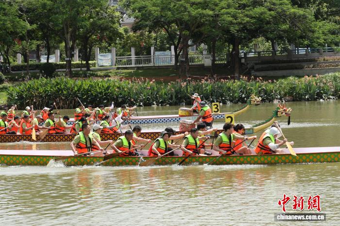 活動現(xiàn)場,隨著發(fā)令槍響,6艘龍舟如離弦之箭破水而出,激昂的戰(zhàn)鼓驟然響起。劃手們奮力揮槳,動作整齊劃一,龍舟劈波斬浪,你追我趕,觀眾的吶喊聲、助威聲此起彼伏,整個賽場洋溢著團結(jié)奮進、昂揚向上的熱烈氛圍。