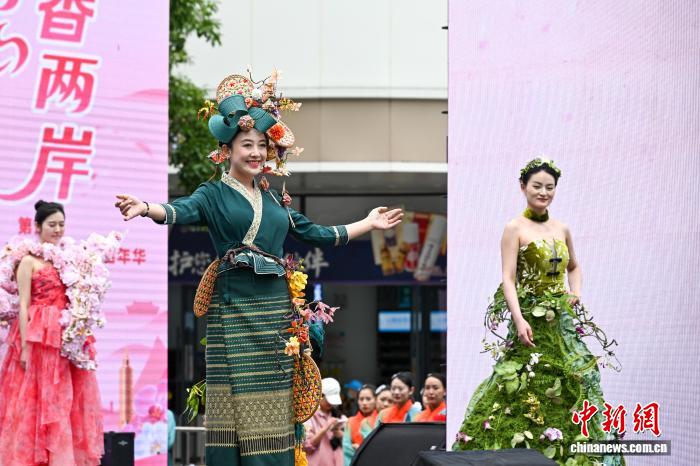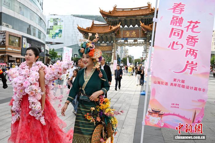 8月27日,模特展示人體花藝。當(dāng)日,“春融同心 花香兩岸”第六屆“山?;ㄕZ 兩岸花植設(shè)計(jì)嘉年華”暨昆臺(tái)青年交流活動(dòng)在云南省昆明市啟幕。本次活動(dòng)展示兩岸花藝師以“兩岸情緣”為創(chuàng)作理念制作的20組花植設(shè)計(jì)藝術(shù)作品,以及1個(gè)以鵲橋造型設(shè)計(jì)象征七夕的大型作品。中新社記者 李嘉嫻 攝