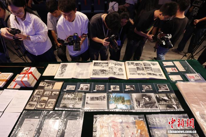 9月2日,江蘇南京,捐贈(zèng)人向侵華日軍南京大屠殺遇難同胞紀(jì)念館捐贈(zèng)的文物史料集中展示。當(dāng)日,侵華日軍南京大屠殺遇難同胞紀(jì)念館舉行文物史料捐贈(zèng)儀式,百余件文物史料入藏該紀(jì)念館,這當(dāng)中有揭露侵華日軍暴行的英美報(bào)刊、反映中國(guó)人民抗日戰(zhàn)爭(zhēng)暨世界反法西斯戰(zhàn)爭(zhēng)勝利的紀(jì)念信封、新四軍游擊隊(duì)繳獲的日軍軍刀、反映侵華日軍在南京掠奪罪行的銅鏡等。中新社記者 泱波 攝