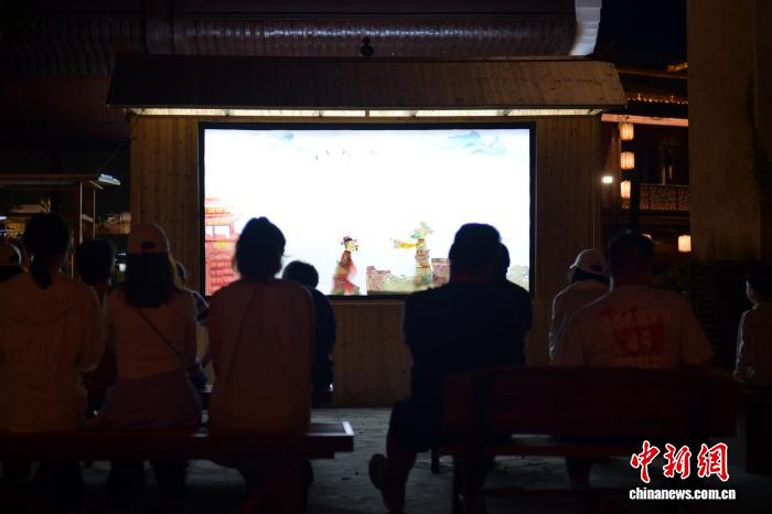 9月10日,在安徽省黃山市休寧縣齊云山生態(tài)文化旅游度假區(qū),游客正在觀賞皮影戲。中新社記者 儲瑋瑋 攝