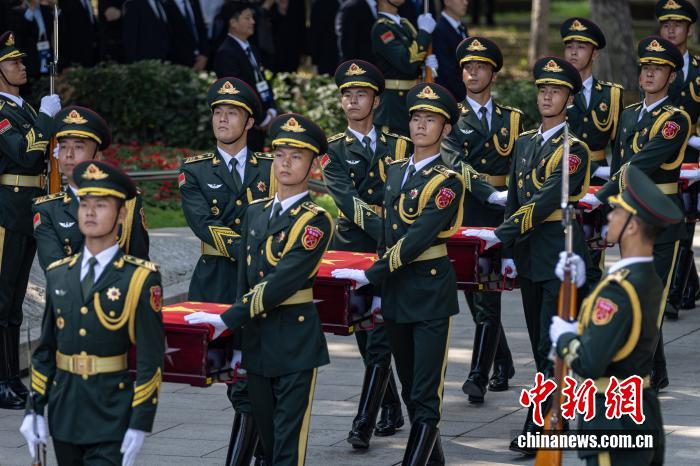 初秋的沈陽(yáng)氣溫不算低,安葬儀式舉辦這天是個(gè)晴天,藍(lán)天白云之下,30位英勇?tīng)奚诋悋?guó)他鄉(xiāng)的志愿軍烈士英靈,回到中華大地安息。