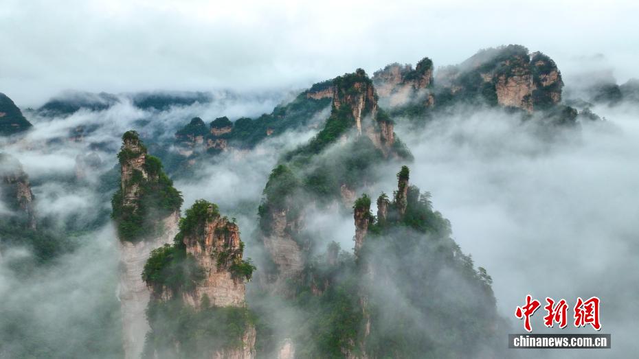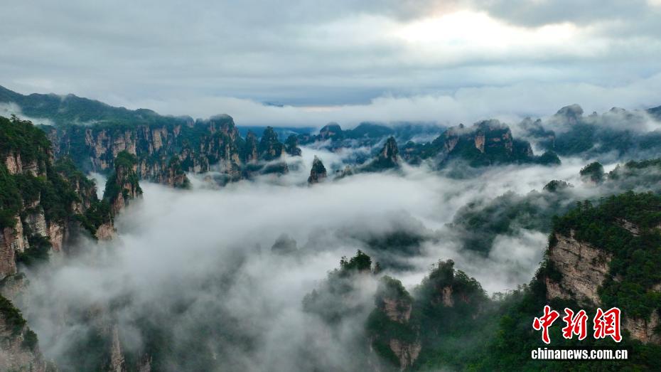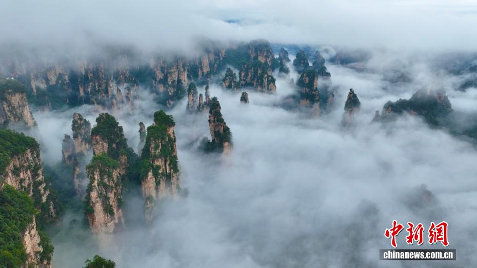 9月15日,湖南張家界武陵源在一場(chǎng)秋雨后迎來(lái)放晴,張家界國(guó)家森林公園內(nèi)的多個(gè)景區(qū)“上新”絕美云海景觀,其夢(mèng)幻意境勝過(guò)《阿凡達(dá)》中的懸浮仙境,讓海內(nèi)外游客直呼“不虛此行”。圖為云霧在峰林間繚繞,蔚為壯觀。