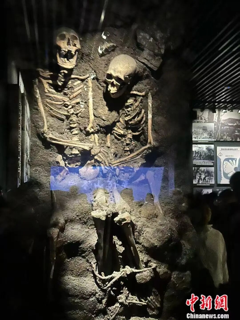 沈陽(yáng)“九·一八”歷史博物館,日偽在熱河制造“集團(tuán)部落”時(shí)殺害我同胞的骸骨。楊茜茜 攝