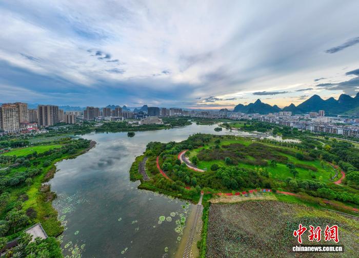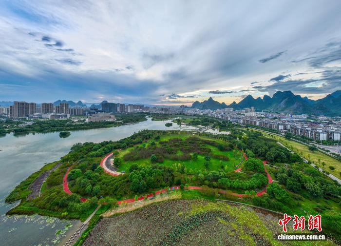 隨著秋天來臨,廣西賀州市愛蓮湖公園的林木郁郁蔥蔥,湖面如鏡。生態(tài)與城市樓宇、公園步道相互交融,構(gòu)成一幅如詩如畫的城市生態(tài)畫卷,美不勝收。圖為愛蓮湖。何華文 攝