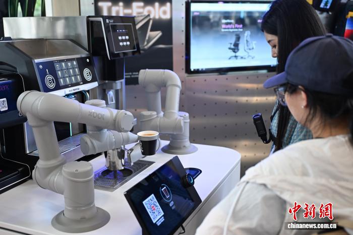 9月24日,咖啡機(jī)器人現(xiàn)場(chǎng)調(diào)制咖啡。當(dāng)日,購在中國(guó)·2025數(shù)字消費(fèi)嘉年華暨杭州數(shù)字貿(mào)易時(shí)尚消費(fèi)周,在浙江杭州西湖畔的上城湖濱路步行街啟動(dòng)。不少數(shù)智時(shí)尚消費(fèi)產(chǎn)品和業(yè)態(tài)在此亮相,吸引民眾體驗(yàn)。中新社記者 王剛 攝