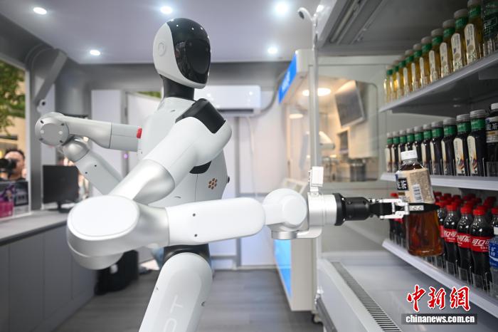 9月24日,無人值守店的機(jī)器人為顧客拿取商品。當(dāng)日,購在中國(guó)·2025數(shù)字消費(fèi)嘉年華暨杭州數(shù)字貿(mào)易時(shí)尚消費(fèi)周,在浙江杭州西湖畔的上城湖濱路步行街啟動(dòng)。不少數(shù)智時(shí)尚消費(fèi)產(chǎn)品和業(yè)態(tài)在此亮相,吸引民眾體驗(yàn)。中新社記者 王剛 攝