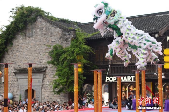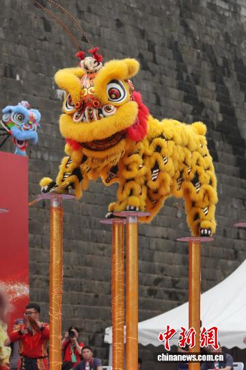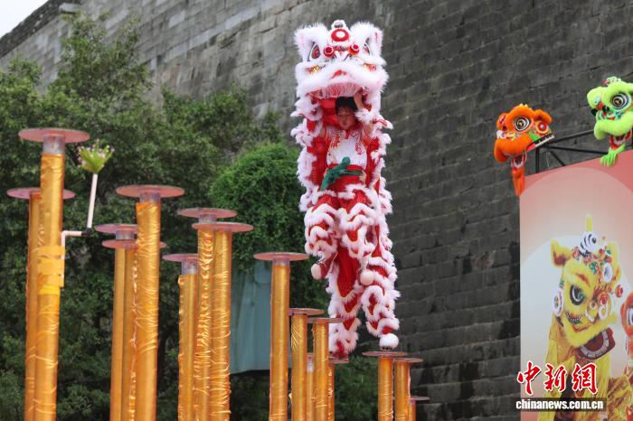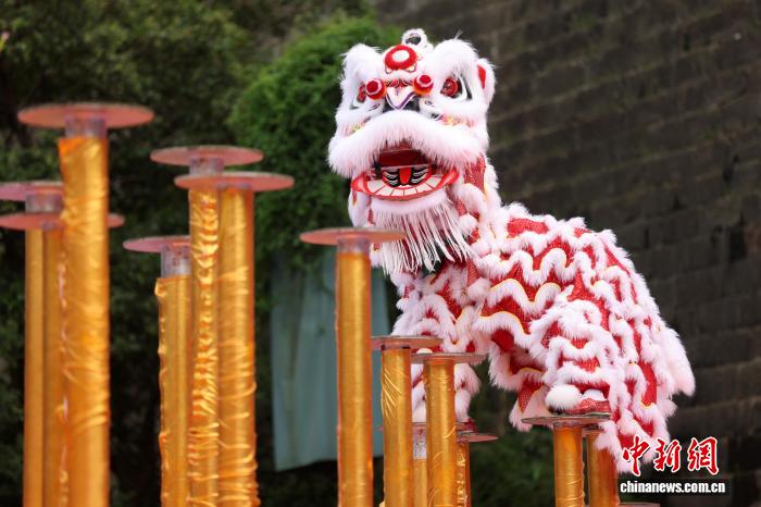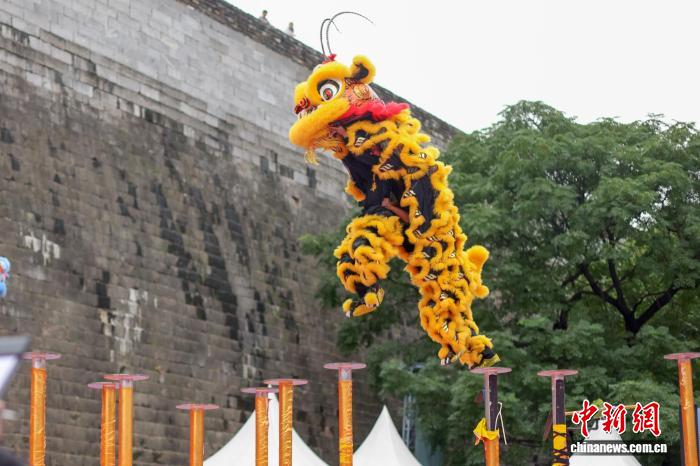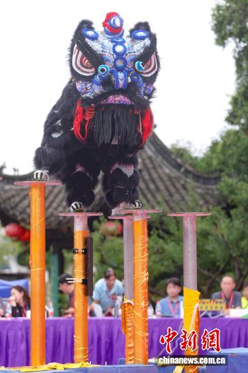 圖為來自江蘇省龍獅運動協(xié)會的參賽選手在比賽中。中新社記者 泱波 攝