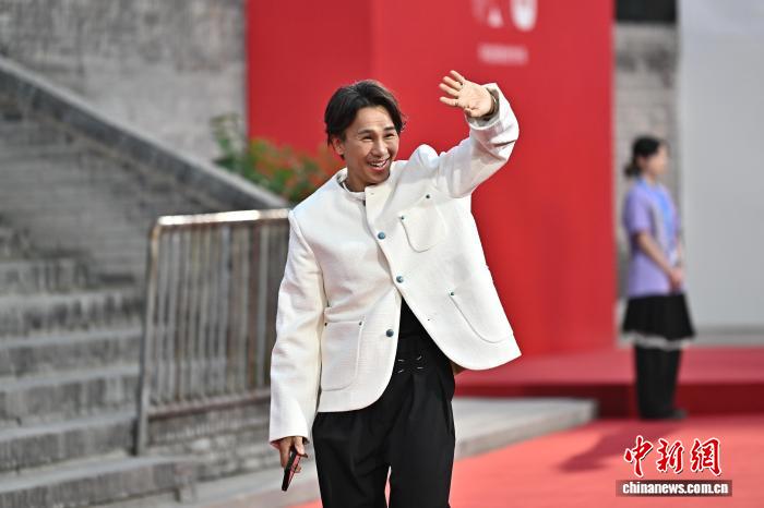9月29日晚,第九屆平遙國際電影展在山西省晉中市平遙古城舉行閉幕紅毯儀式。圖為香港電影《殺手#4》導演梁居英亮相紅毯。中新社記者 韋亮 攝