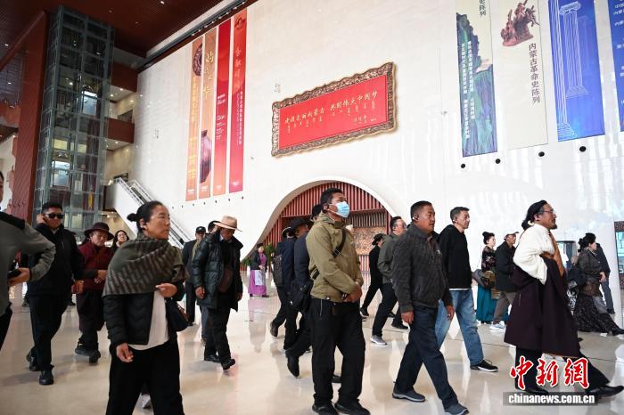 10月12日,內(nèi)蒙古呼和浩特市,海外歸國定居藏胞在內(nèi)蒙古博物院參觀。當(dāng)日,“僑連五洲·海外歸國定居藏胞代表人士國情教育活動”在呼和浩特進(jìn)入第一天行程。40余位海外歸國定居藏胞代表,接下來將用近一周時間,在呼和浩特、包頭、鄂爾多斯3地,直觀了解內(nèi)蒙古的人文歷史、生態(tài)建設(shè)與現(xiàn)代產(chǎn)業(yè)等方面內(nèi)容。中新社記者 劉文華 攝