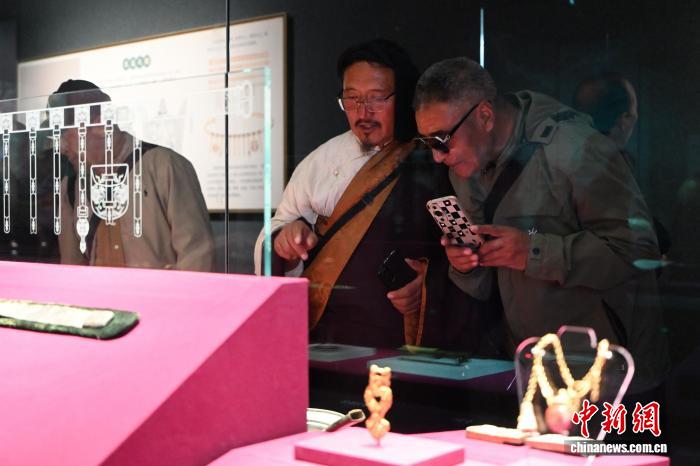 10月12日,內(nèi)蒙古呼和浩特市,海外歸國定居藏胞在內(nèi)蒙古博物院參觀遼代金飾。當(dāng)日,“僑連五洲·海外歸國定居藏胞代表人士國情教育活動”在呼和浩特進(jìn)入第一天行程。40余位海外歸國定居藏胞代表,接下來將用近一周時間,在呼和浩特、包頭、鄂爾多斯3地,直觀了解內(nèi)蒙古的人文歷史、生態(tài)建設(shè)與現(xiàn)代產(chǎn)業(yè)等方面內(nèi)容。中新社記者 劉文華 攝