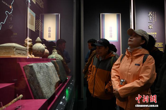 10月12日,內(nèi)蒙古呼和浩特市,海外歸國定居藏胞在內(nèi)蒙古博物院了解隋唐歷史。當(dāng)日,“僑連五洲·海外歸國定居藏胞代表人士國情教育活動”在呼和浩特進(jìn)入第一天行程。40余位海外歸國定居藏胞代表,接下來將用近一周時間,在呼和浩特、包頭、鄂爾多斯3地,直觀了解內(nèi)蒙古的人文歷史、生態(tài)建設(shè)與現(xiàn)代產(chǎn)業(yè)等方面內(nèi)容。中新社記者 劉文華 攝