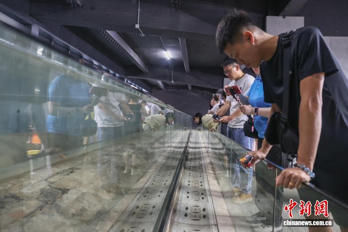 10月15日,江西贛州,兩岸新媒體人在福壽溝博物館內(nèi)觀看福壽溝雙溝遺址(圖左)?!案蹨稀笔冀ㄓ谒未锹癫卦谮M州老城區(qū)地下,至今仍在使用的中國古代城市下水道工程,福壽溝博物館即建立在一段保存非常完好的福壽溝雙溝遺址上,是中國唯一地下排水系統(tǒng)博物館。中新社記者 劉力鑫 攝