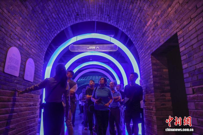10月15日,江西贛州,兩岸新媒體人在福壽溝博物館的福壽溝還原展示區(qū)參觀?!案蹨稀笔冀ㄓ谒未?,是埋藏在贛州老城區(qū)地下,至今仍在使用的中國古代城市下水道工程,福壽溝博物館即建立在一段保存非常完好的福壽溝雙溝遺址上,是中國唯一地下排水系統(tǒng)博物館。中新社記者 劉力鑫 攝