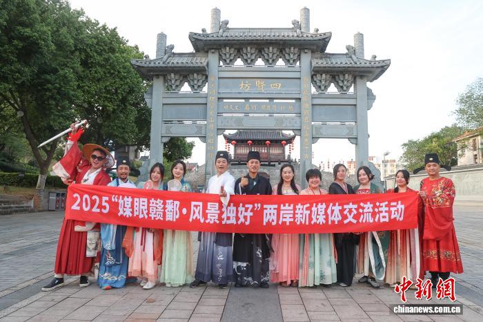 10月15日,江西贛州,兩岸新媒體人身著古裝,在江南宋城歷史文化街區(qū)拍攝視頻素材。當日,2025“媒眼贛鄱·風景獨好” 兩岸新媒體交流活動一行走進“江南宋城”贛州的老城區(qū),先后前往了福壽溝博物館、江南宋城歷史文化街區(qū)、郁孤臺、宋代古城墻等地參觀采風,沉浸式感受千年宋城文化的獨特魅力。中新社記者 劉力鑫 攝