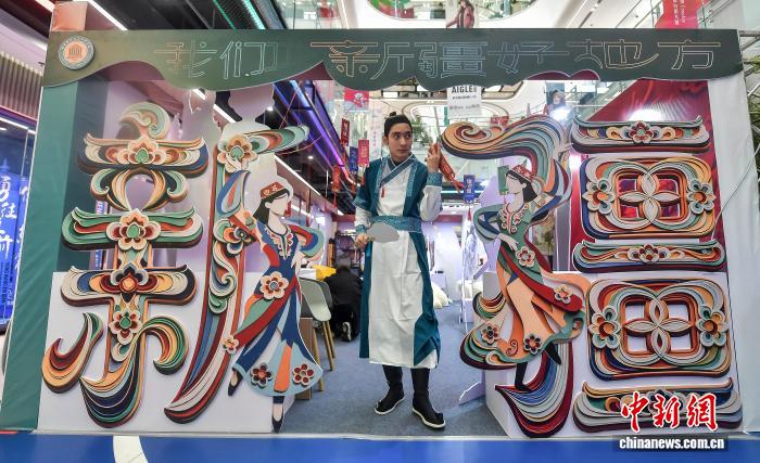 10月20日,新疆烏魯木齊市,正在該市經(jīng)濟技術(shù)開發(fā)區(qū)(頭屯河區(qū))舉辦的第三屆(2025)新疆動漫節(jié)吸引眾多市民前來參觀。本屆動漫節(jié)吸引全國13個省區(qū)、新疆14個地(州、市)的50余所院校、近50家動漫企業(yè)及廣大動漫愛好者參與其中。圖為工作人員身著國風(fēng)服飾,為動漫作品《張騫歸來》造勢。中新社記者 劉新 攝