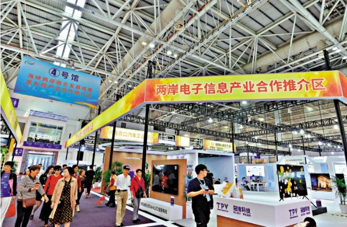 圖:“十五五”時期大陸經(jīng)濟(jì)社會高質(zhì)量發(fā)展將為廣大臺胞臺企發(fā)展提供更多機(jī)遇,有利進(jìn)一步加強(qiáng)兩岸經(jīng)合。圖為在福州舉行的海交會兩岸電子信息產(chǎn)業(yè)合作推介區(qū)。/資料圖片