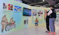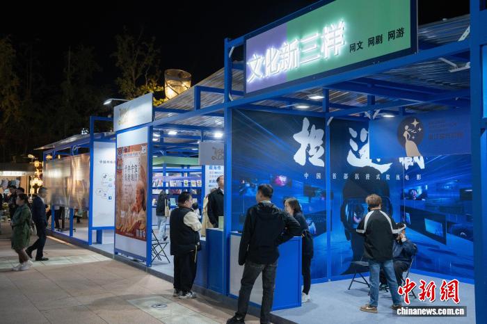 10月23日,當(dāng)?shù)卦O(shè)立的文化“新三樣”(網(wǎng)文、網(wǎng)劇、網(wǎng)游)展位。中新社記者 吳君毅 攝