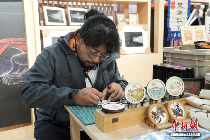10月23日,手工藝人創(chuàng)作特色魚(yú)繪文創(chuàng)。中新社記者 吳君毅 攝