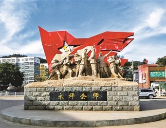 位于陜西省延安市延川縣的永坪會師雕像。資料照片