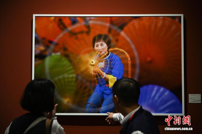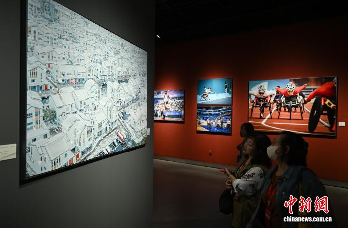 10月31日,展出的攝影作品吸引參觀者。當日,第三屆海峽兩岸中華攝影獎暨第六屆海峽兩岸影像文化周在浙江杭州啟幕,本次活動以“打造攝影的中華語境,傳播攝影的中華語言”為宗旨,250余位兩岸攝影界代表匯聚一堂,在光影中共賞中華之美、共敘血脈親情。中新社記者 王剛 攝