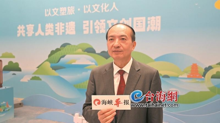 在閩臺(tái)文旅融合發(fā)展論壇上,中國(guó)非物質(zhì)文化遺產(chǎn)保護(hù)協(xié)會(huì)副會(huì)長(zhǎng)陳吉發(fā)表主題演講。
