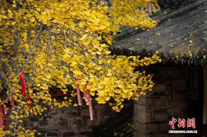 圖為金黃的銀杏葉與古建筑相映成趣。韓金雨 攝