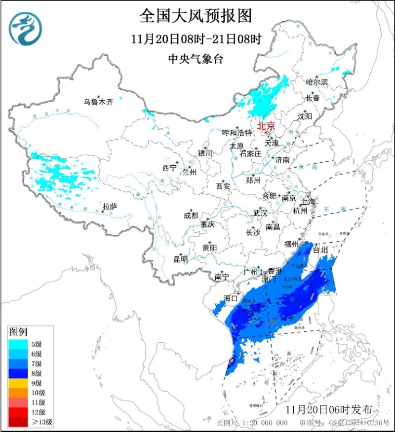 我國東南部和南部近海有大風(fēng)。今明兩天,我國東南部和南部近海仍有大風(fēng)。中央氣象臺今晨繼續(xù)發(fā)布大風(fēng)藍(lán)色預(yù)警:今天,臺灣海峽、臺灣以東洋面偏南海域、巴士海峽、南海北部和中部海域、南海西南部偏西海域?qū)⒂?~8級、陣風(fēng)9~10級的大風(fēng)。在上述海域航行、作業(yè)的船舶需注意安全。