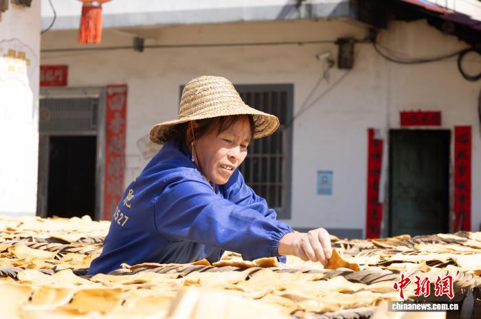 11月21日,在廣西田林縣六隆鎮(zhèn)平細(xì)村,村民在庭院晾曬八渡筍。楊啟建 攝