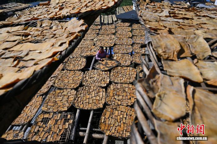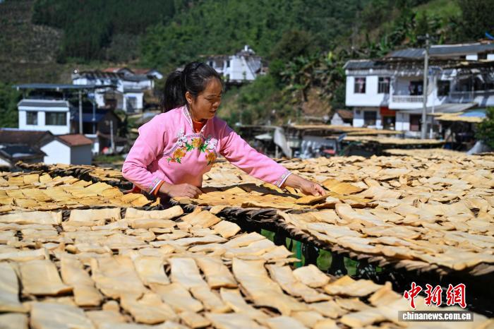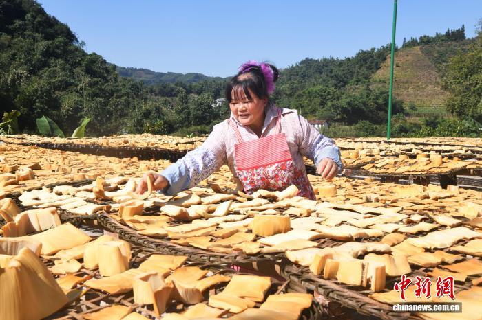 11月21日,在廣西田林縣六隆鎮(zhèn)平細(xì)村,村民在晾曬八渡筍。余海瀟 攝