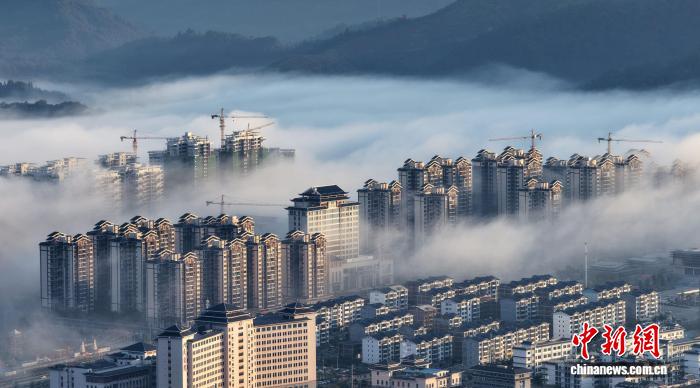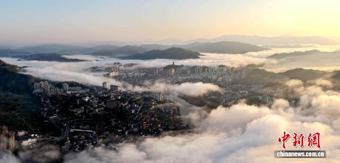 11月25日,廣西三江侗族自治縣縣城被平流霧籠罩。無人機鏡頭下,鱗次櫛比的樓宇在云海中若隱若現(xiàn),遠處青山與城市輪廓相映成趣,宛如一幅水墨畫卷,盡顯侗鄉(xiāng)晨曦的朦朧詩意。圖為三江侗族自治縣云海美景。龔普康 攝