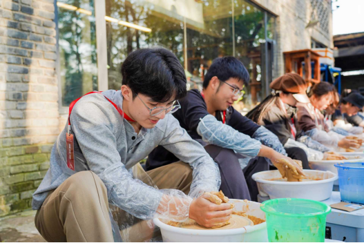 走進(jìn)邛窯國(guó)家考古遺址公園,42米龍窯遺址勾勒出當(dāng)?shù)啬铣了文┑闹铺彰}絡(luò)?!耙豢炊紩?huì),一做都廢!”在陶藝?yán)黧w驗(yàn)課堂上,西南政法大學(xué)臺(tái)生鐘同學(xué)對(duì)著手中的陶坯笑稱,揉泥、拉坯的力道控制讓她深刻體會(huì)“三分拉坯、七分修坯”的匠心。當(dāng)了解到邛窯青瓷曾通過茶馬古道遠(yuǎn)銷海外,她感慨:“原來千年之前,巴蜀文化就已走向世界?!?/p>
