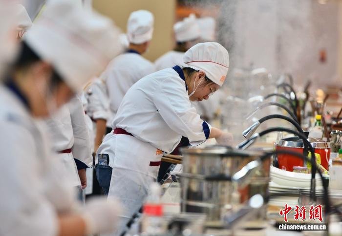 12月8日,2025“食尚兩岸·香聚沙縣”海峽兩岸廚藝交流賽加分場暨頒獎(jiǎng)典禮舉行。本次比賽在福建省三明市沙縣小吃食品產(chǎn)業(yè)園舉行,30名臺灣學(xué)生與20名臺灣青年廚師組成10組隊(duì)伍,對沙臺兩地小吃進(jìn)行深度體驗(yàn),同步開展廚藝競賽。圖為加分場比賽中參賽隊(duì)員正在烹飪菜品。中新社記者 張斌 攝