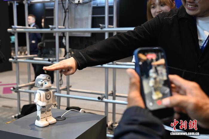 圖為現(xiàn)場人士與智能教育機器人互動。中新網(wǎng)記者 李志華 攝