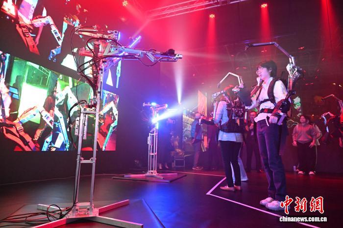 圖為現(xiàn)場觀眾換上可穿戴式控制器參與活動。中新網(wǎng)記者 李志華 攝