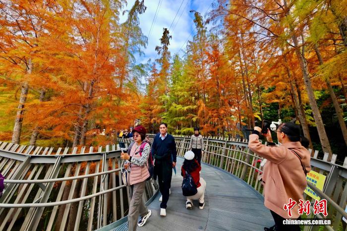 12月22日,福建福州,市民和游客在福道觀賞漸漸“換裝”變紅的水杉林。中新社記者 王東明 攝
