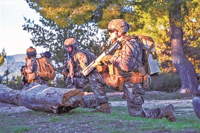 上面這張照片中,一隊全副武裝的法軍特種部隊作戰(zhàn)人員正在執(zhí)行任務(wù)。近處這名跪立的士兵,手中所持步槍科技感十足:槍管呈多面體,槍托底部有兩根線纜與士兵背上的背包相連。顯然,這并非傳統(tǒng)步槍,與常見的無人機反制槍也有所不同。事實上,這是法國一家防務(wù)公司最新推出的激光步槍。