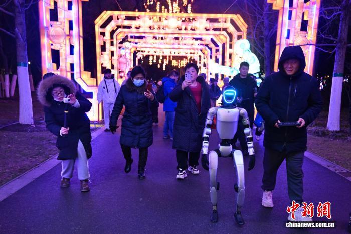 圖為機(jī)器人逛燈會(huì)。中新社記者 韓蘇原 攝