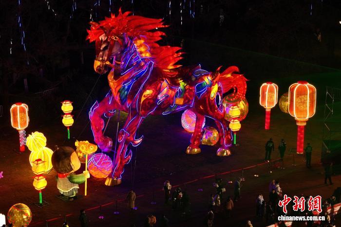 圖為“巨馬奔騰”巨型燈組吸引民眾參觀(guān)。中新社記者 韓蘇原 攝