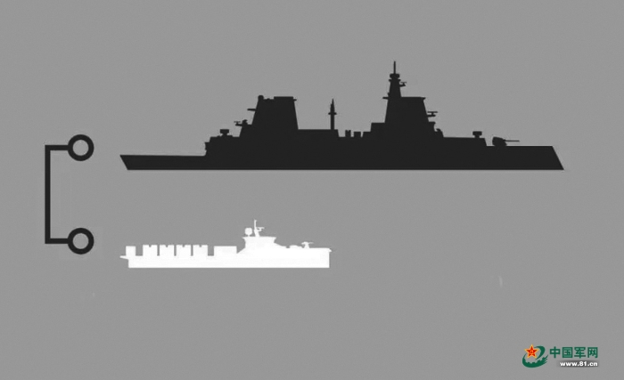 無人導(dǎo)彈武庫艦(下)及F127護(hù)衛(wèi)艦(上)外觀大小對比圖。