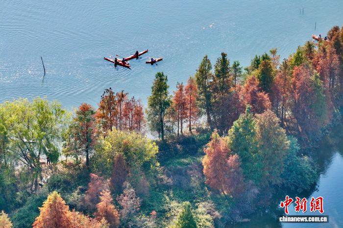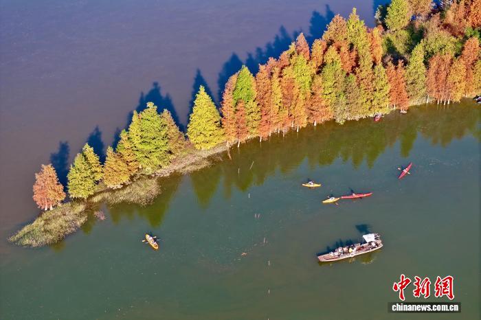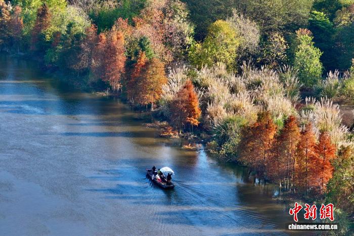 1月7日,福建省福州市閩侯縣濕地公園里的水杉漸漸變紅。福州地處東南沿海,境內(nèi)濕地資源豐富,并在2025年7月被正式授予“國際濕地城市”稱號。(無人機(jī)照片)中新社記者 王東明 攝