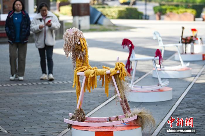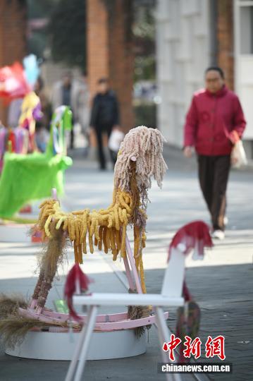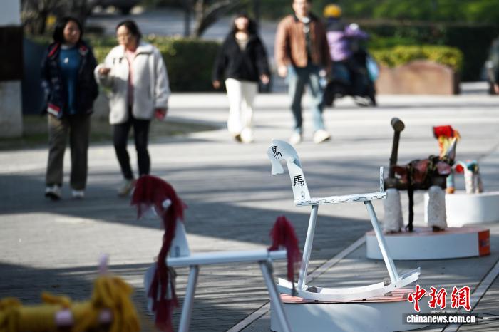 1月15日,江蘇南京,市民從造型獨(dú)特的馬年主題藝術(shù)作品旁走過(guò)。中新社記者 泱波 攝