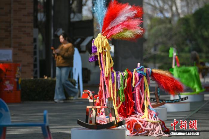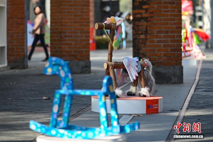 1月15日,江蘇南京,市民從造型獨(dú)特的馬年主題藝術(shù)作品旁走過(guò)。近日,馬年主題公共藝術(shù)展亮相南京街頭,多位藝術(shù)家以多彩針織、創(chuàng)意裝飾等多元形式對(duì)木馬進(jìn)行創(chuàng)作,呈現(xiàn)一件件極富創(chuàng)意與巧思的藝術(shù)裝置。中新社記者 泱波 攝